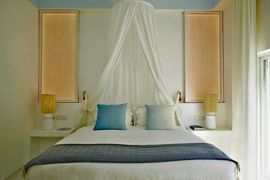 Villa Indigo is a private housing with 3 suites; one with seating area, a large living room that divides between living and dining room with an open kitchen.
